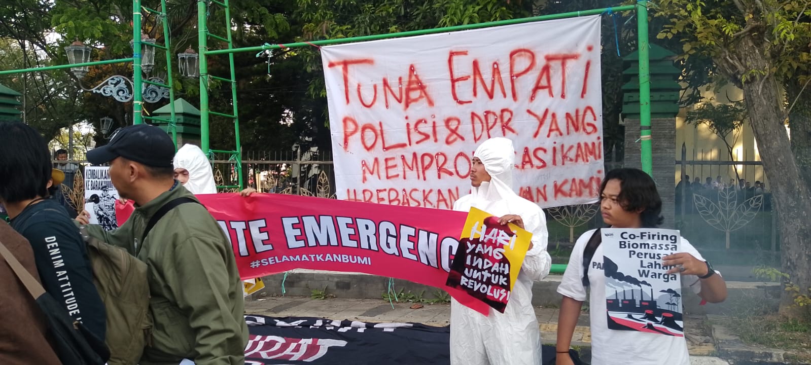 “Kami menilai praktik pembangunan daerah selama ini masih jauh dari prinsip transparansi, reformasi, dan etika. Buruh, petani, guru honorer, dan masyarakat kecil justru menjadi korban kebijakan pro-modal, sementara lingkungan hidup rusak akibat industri ekstraktif dan tata kelola sumber daya alam yang tidak adil,” ungkap Koordinator Lapangan, Yogi Noviantara.