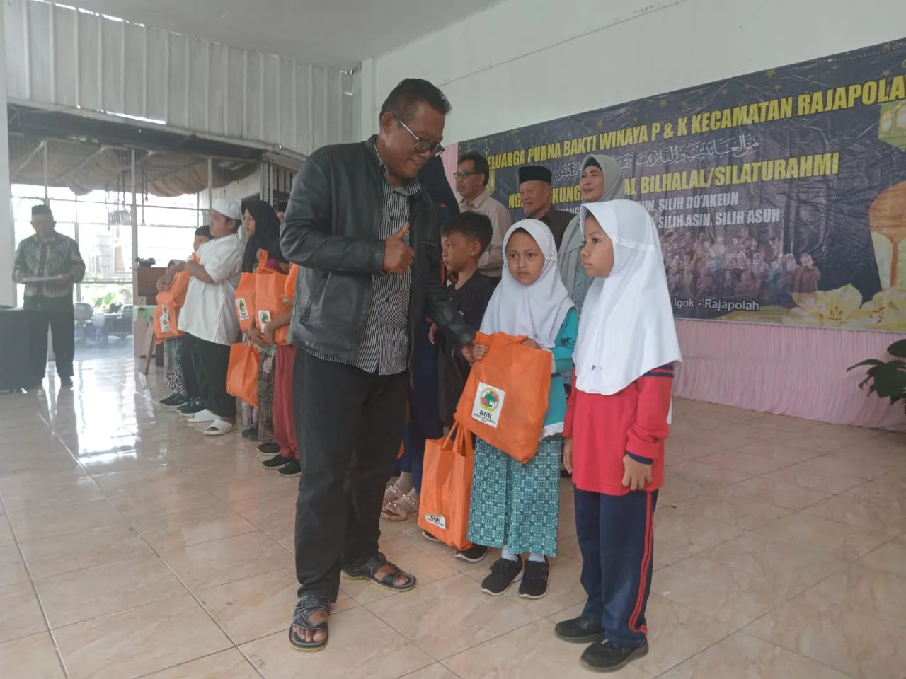 Tasikmalaya (BR.NET).- Keluarga besar Purna Bakti Winaya P&K Kecamatan Rajapolah kembali menggelar kegiatan Halal Bihalal yang sarat makna kebersamaan dan kepedulian sosial. Selain menjadi ajang silaturahmi, kegiatan ini juga diisi dengan aksi sosial berupa santunan bagi anak yatim.
