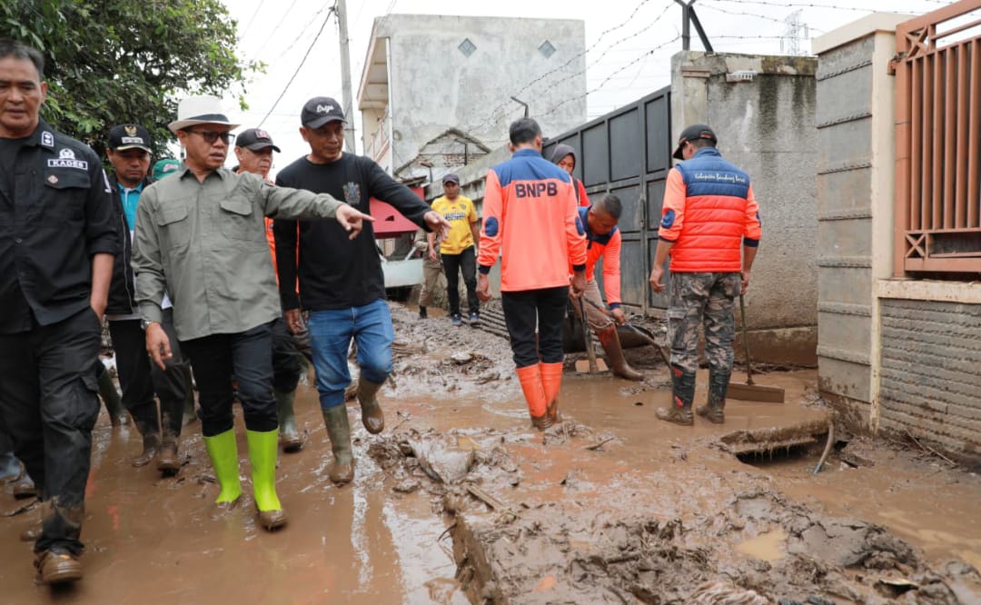 Bupati Bandung, Dadang Supriatna yang disapa akrab Kang DS, turun langsung ke lokasi untuk memastikan proses penanganan berjalan optimal sekaligus memberikan dukungan kepada warga terdampak.