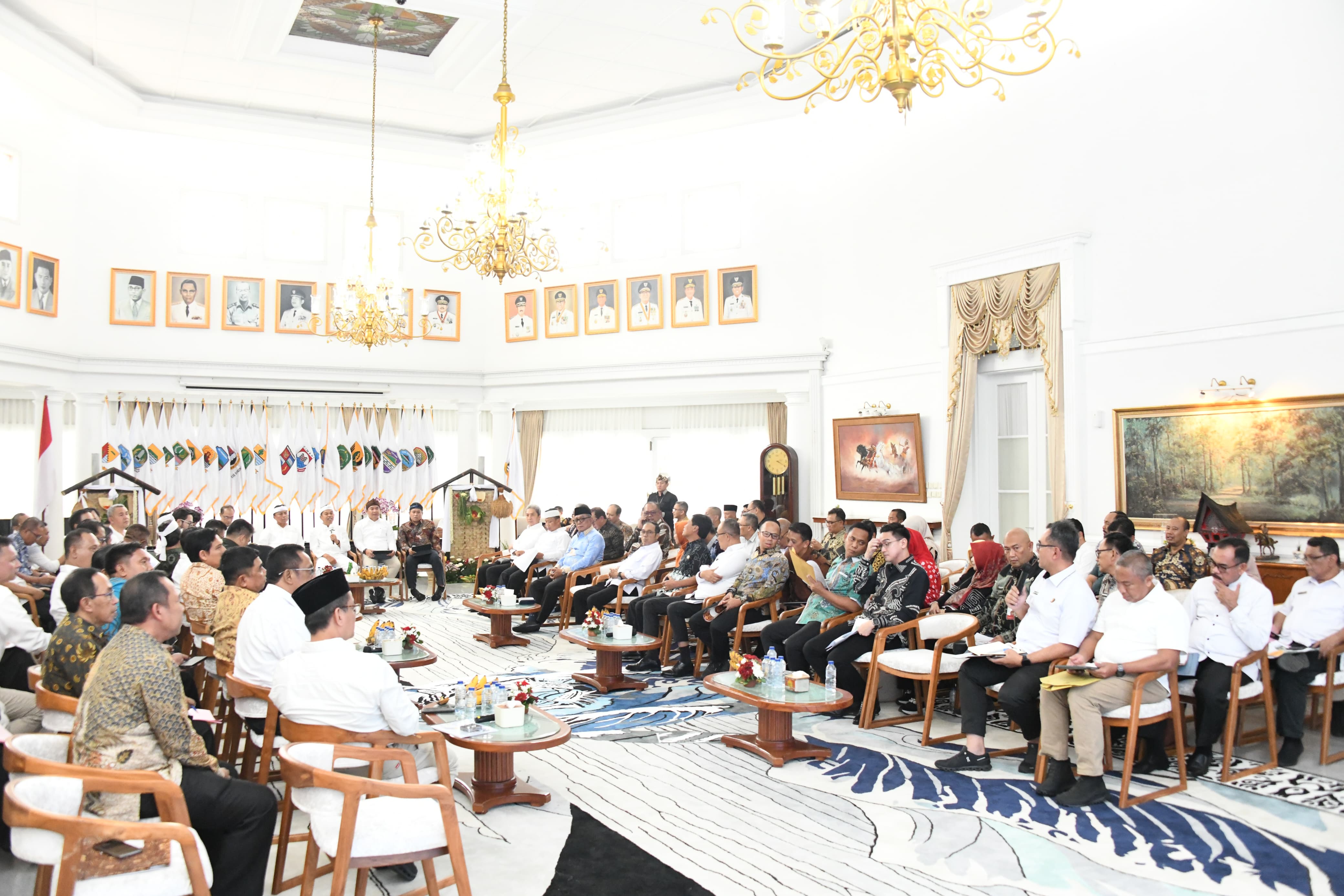 Rapat hearing tersebut dipimpin langsung oleh Gubernur Jawa Barat dan dihadiri para kepala daerah serta jajaran pendamping, di antaranya Sekretaris Daerah, Kepala BKAD, Kepala Bapperida, Kepala Bapenda, dan Inspektur.