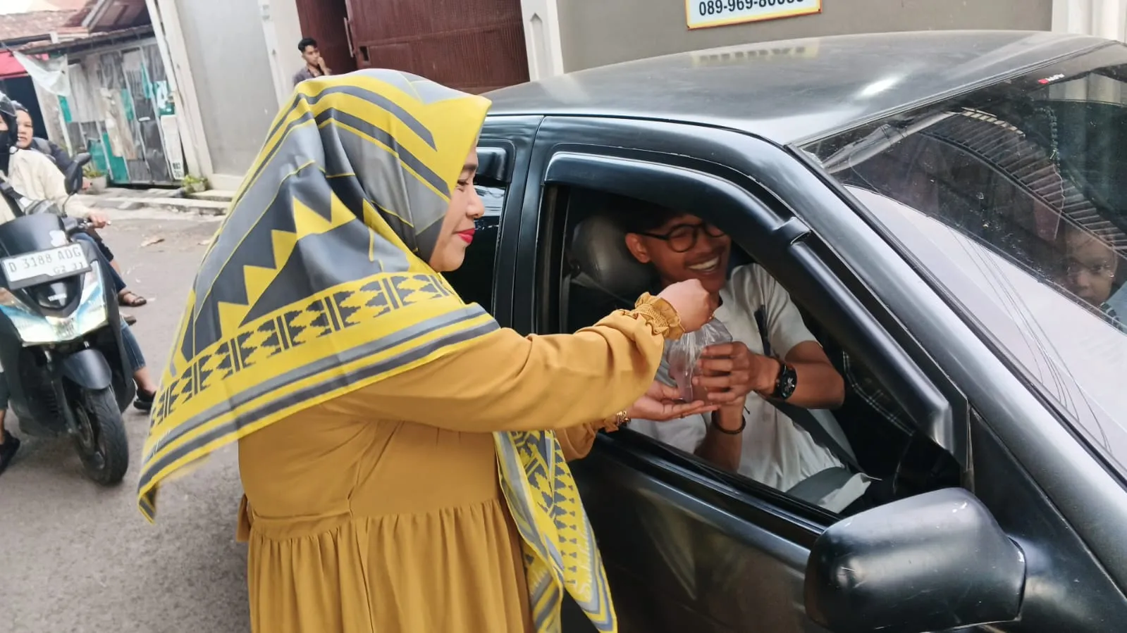 "Alhamdulillah ada hamba Alloh yang menitipkan makanan untuk berbuka puasa yang harus dibagikan secara gratis kepada warga dan pengendara yang melintas. Kami dari pengurus RW menghaturkan terima kasih atas kepedulian hamba Alloh ini, sehingga kami pun harus menyampaikannya kepada yang berhak," papar Ongky
