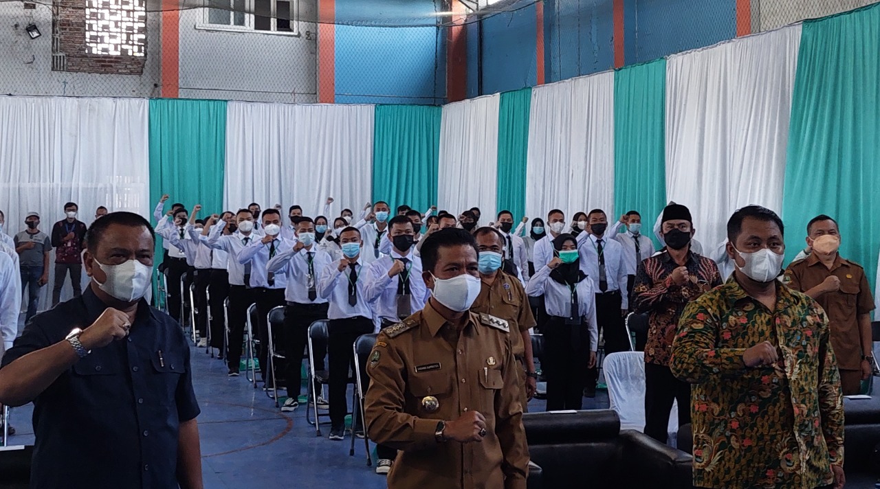 Bandungraya.net – Rancaekek | Bupati Bandung, Dadang Supriatna memberikan motivasi kepada para peserta pelatihan Bahasa Korea dan Jepang, yang disiapkan Pemkab Bandung untuk bekerja di kedua negera itu.