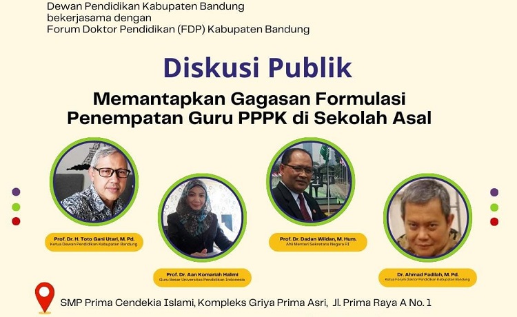 Diskusi Publik ini diselenggarakan oleh Dewan Pendidikan Kabupaten Bandung bekerjasama dengan Forum Doktor Pendidikan (FDP) Kabupaten Bandung, dilaksanakan pada Selasa, 26 Desember 2023.