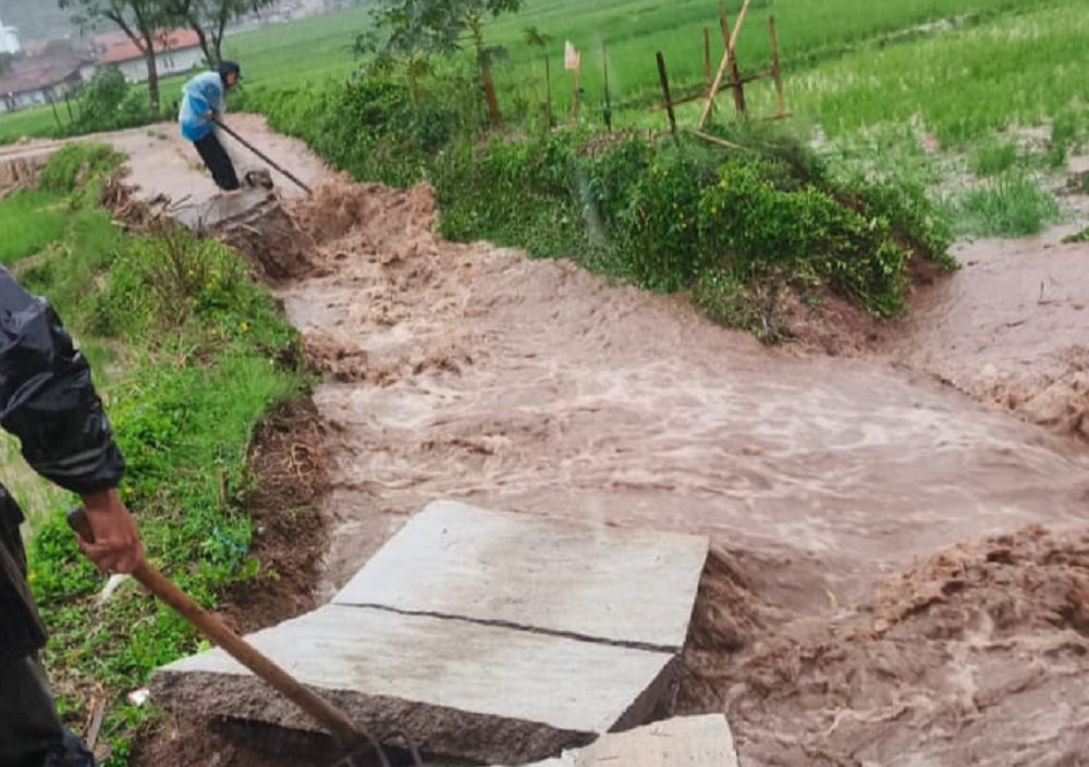 Ciwidey, (BR.NET).- Hujan deras sepanjang hari yang mengguyur wilayah Desa Sukawening Kecamatan Ciwidey, mengakibatkan jalan gang penghubung antar RW terputus karena terkena luapan air. Selain itu, hektaran tanaman padi terendam banjir