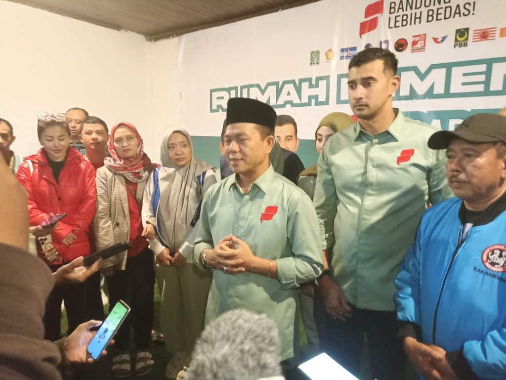 “Maka saya meyakini bahwa pasangan nomor urut 02 Dadang Supriatna dan Ali Syakieb, insya Allah terpilih jadi Bupati dan Wakil Bupati Bandung periode 2024-2029,” ujar Calon Bupati Bandung Dadang Supriatna didampingi Calon Wakil Bupati Bandung Ali Syakieb kepada awak media di Rumah Pemenangan Bedas, Kelurahan/Kecamatan Baleendah Kabupaten Bandung, Rabu (27/11/2024) malam.