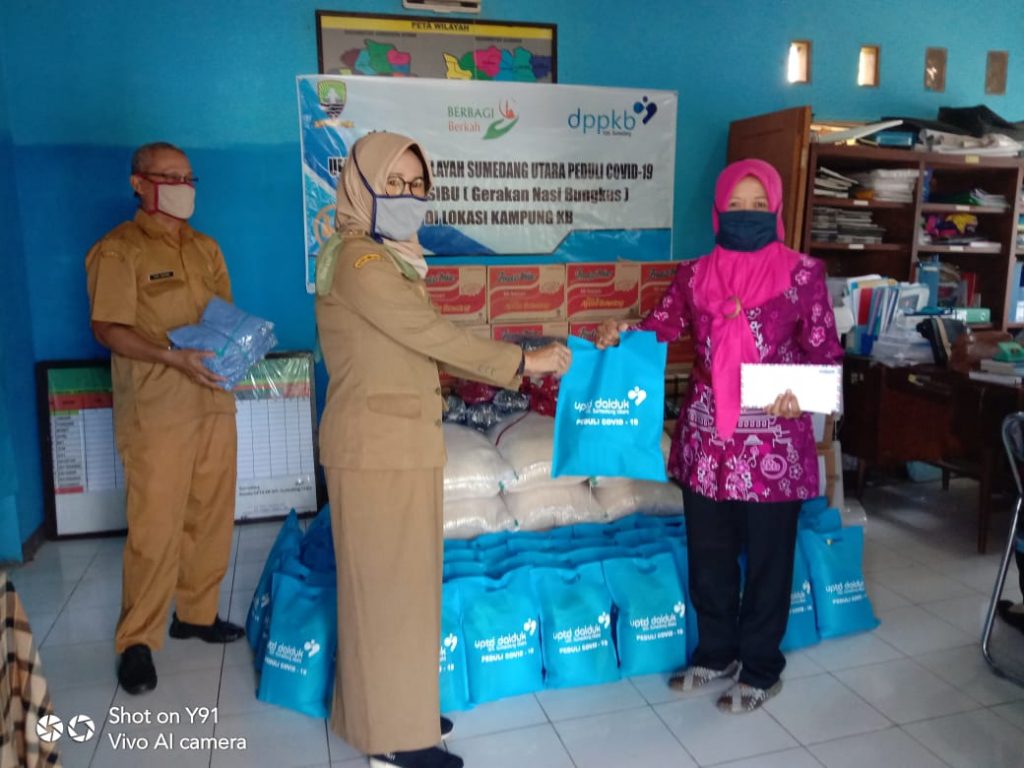Sumedang (BR)- Jajaran Unit Pelaksana Teknis Dinas Pengendalian Penduduk Keluarga Berencana (UPTD Dalduk) Sumedang Utara/ Cisarua melaksanakan giat Bhakti sosial tahap 3 dengan menggelar Gerakan Nasi Bungkus (Gasibu) berupa beras, minyak goreng, gula putih dan mie instan, yang digelar dikantornya, di jalan Simpang Lima Jatihurip, Kecamatan Sumedang Utara, Senin (27/4/2020).