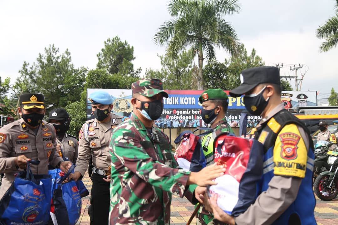 Dalam kegiatan tersebut Kapolres Tasikmalaya Kota memberikan Bantuan Sosial berupa Paket Sembako kepada peserta Vaksinasi dan Masyarakat yang terdampak PPKM Level IV Covid-19 di Wilayah Kota Tasikmalaya.