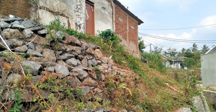 “Kondisi lahan kavling rumah kami berada pada posisi tebing diperkirakan setinggi 5 meter dan tanah bekas urugan yang pengerasnya belum maksimal, ditambah lagi tidak adanya TPT, hingga struktur lantai dan dinding selalu retak-retak. Meskipun sudah kami perbaiki, tapi kembali retak lagi bahkan semakin melebar,” ungkapnya.