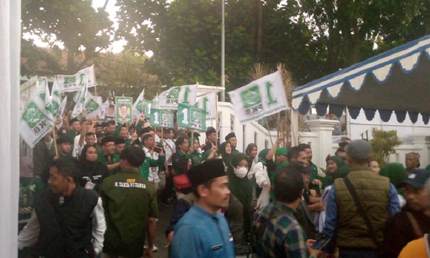 Kab. Bandung (BR).-Ketua DPC PKB Kab. Bandung, Dr. H.M. Dadang Supriatna bersama pengurus DPC PKB Kab.Bandung menuju KPUD untuk melakukan pendaftaran bakal calon anggota DPRD Kab Bandung Periode 2024-2029, Sabtu (13/5/2023)