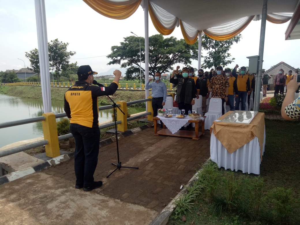 Bandungraya. net – Cileunyi | Pemkab Bandung melakukan intervensi dalam menyikapi keluhan masyarakat yang menjadi korban banjir di Komplek Perumahan Bumi Harapan Desa Cibiru Hilir Kecamatan Cileunyi Kabupaten Bandung, yaitu dengan cara membangun kolam retensi Situ Bugel seluas 3.500 meter persegi dan rumah pompa di kawasan perumahan tersebut, hal tersebut disampaikan Dadang Naser usai Meresmikan Kolam Retensi Kamis (26/11/20).