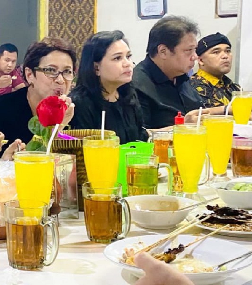 Selepas kunjungan dan Takziah ke keluarga Gubernur Jabar, Menteri Koordinator Bidang Perekonomian Indonesia yang juga sebagai Ketua umum Partai Golkar mendapat jamuan dari Pengurus Partai Golkar Kab. Bandung, untuk melakukan santap malam di Rumah Makan sate sadu.
