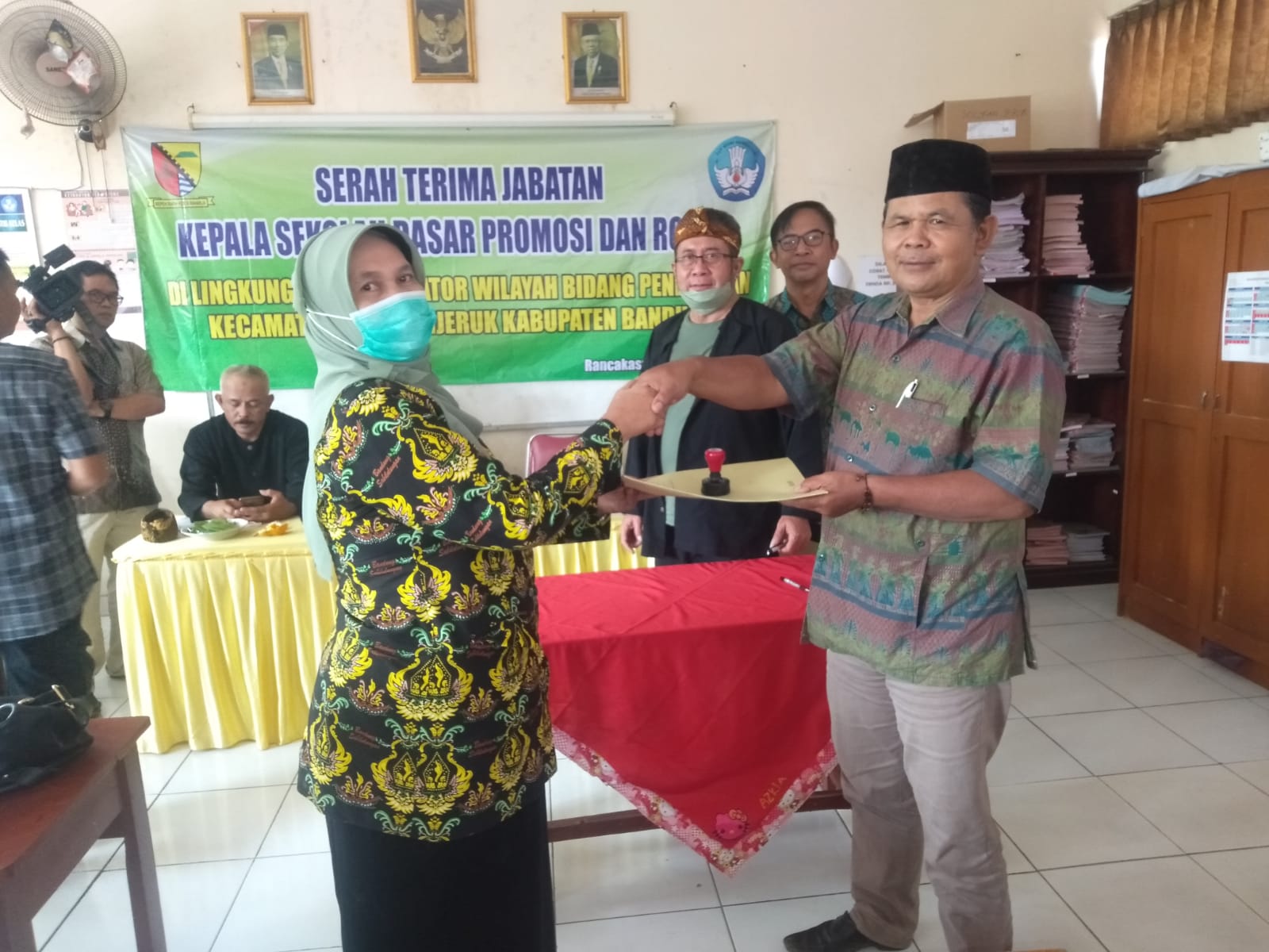 Serah terima jabatan kepala sekolah tingkat kecamatan wilayah Solokanjeruk, berlangsung di komplek Gedung SDN Rancakasumba Kecamatan Solokanjeruk, Kamis (6/1/2022).