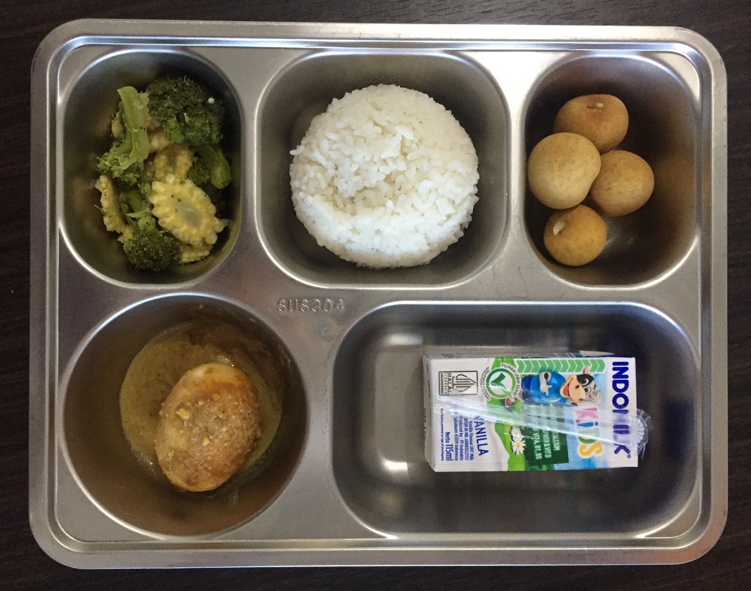Menu yang disajikan bervariasi setiap hari sesuai dengan permintaan siswa. Pemerintah menetapkan pagu anggaran sebesar Rp8.000 per porsi untuk siswa TK hingga kelas 3 SD, serta Rp10.000 per porsi untuk siswa kelas 4 SD hingga SMA.