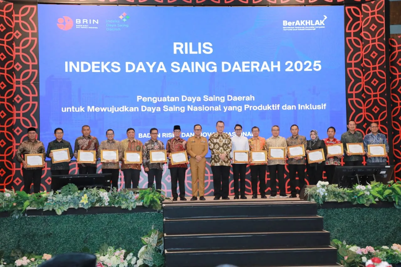 Penghargaan diserahkan oleh Wakil Menteri Dalam Negeri Bima Aria kepada Bupati Bandung di ajang Rilis Indeks Daya Saing Daerah (IDSD) Tahun 2025, di Auditorium Sumitro Djojohadikusumo Ged. B.J Habibie Jakarta, Selasa 24 Februari 2026.