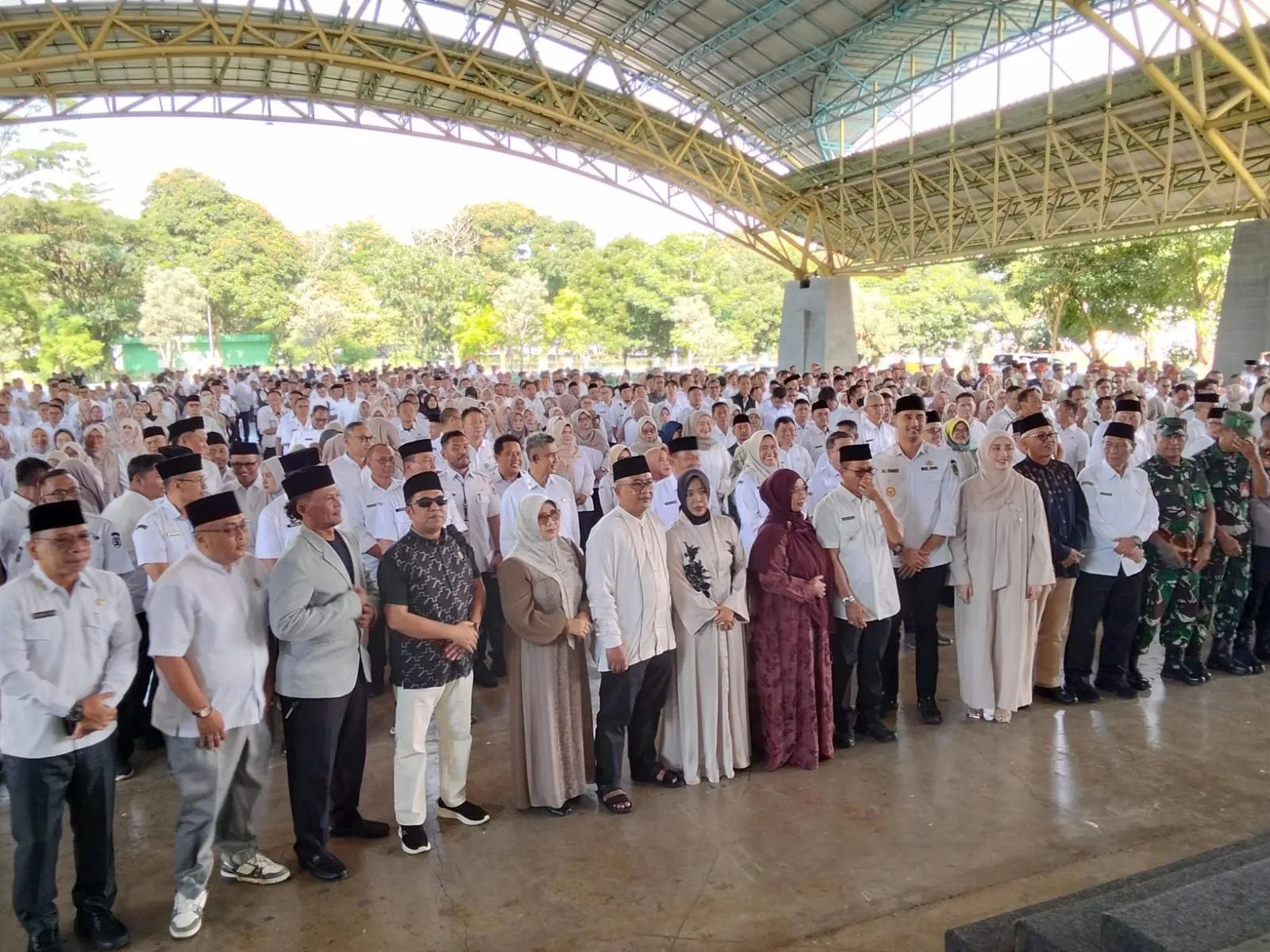 Sejak pagi, suasana Dome Balerame tampak tertib dan khidmat. Para ASN mengenakan pakaian serba putih dengan bawahan hitam, menciptakan pemandangan seragam yang mencerminkan kesederhanaan sekaligus kekompakan.