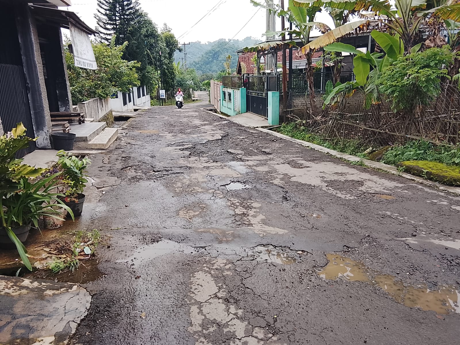 "Kondisi jalan sudah lama memprihatinkan, rusak parah dan tak tersentuh perbaikan. Apalagi kalau habis diguyur hujan, kita harus hati-hati banyak kubangan," keluh seorang warga setempat, yang tidak mau disebutkan jatidirinya.