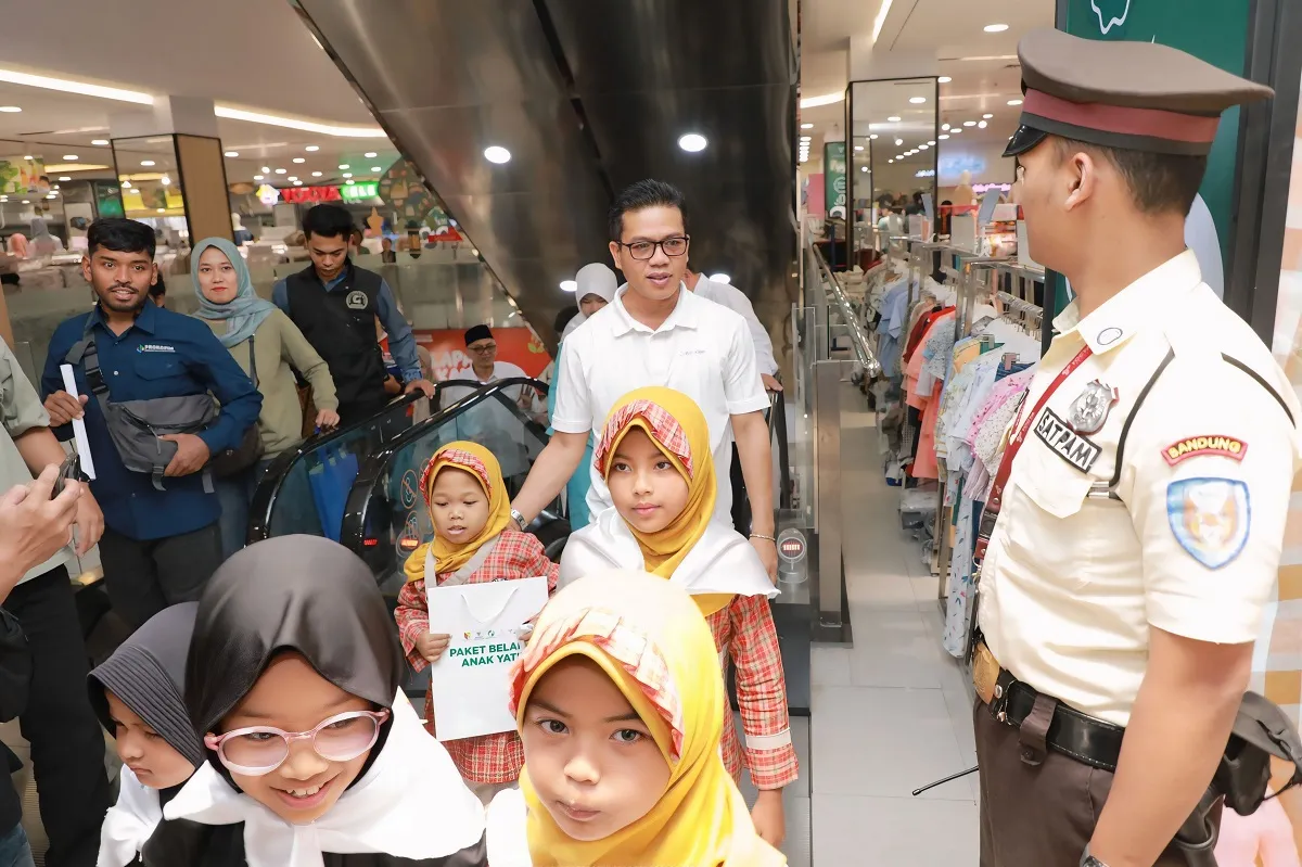 ).– Bupati Bandung, Dadang Supriatna (Kang DS) mengajak 100 anak yatim piatu berbelanja pakaian Lebaran di Pusat Perbelanjaan Jogja Soreang, Kabupaten Bandung, Minggu (1/3/2026).