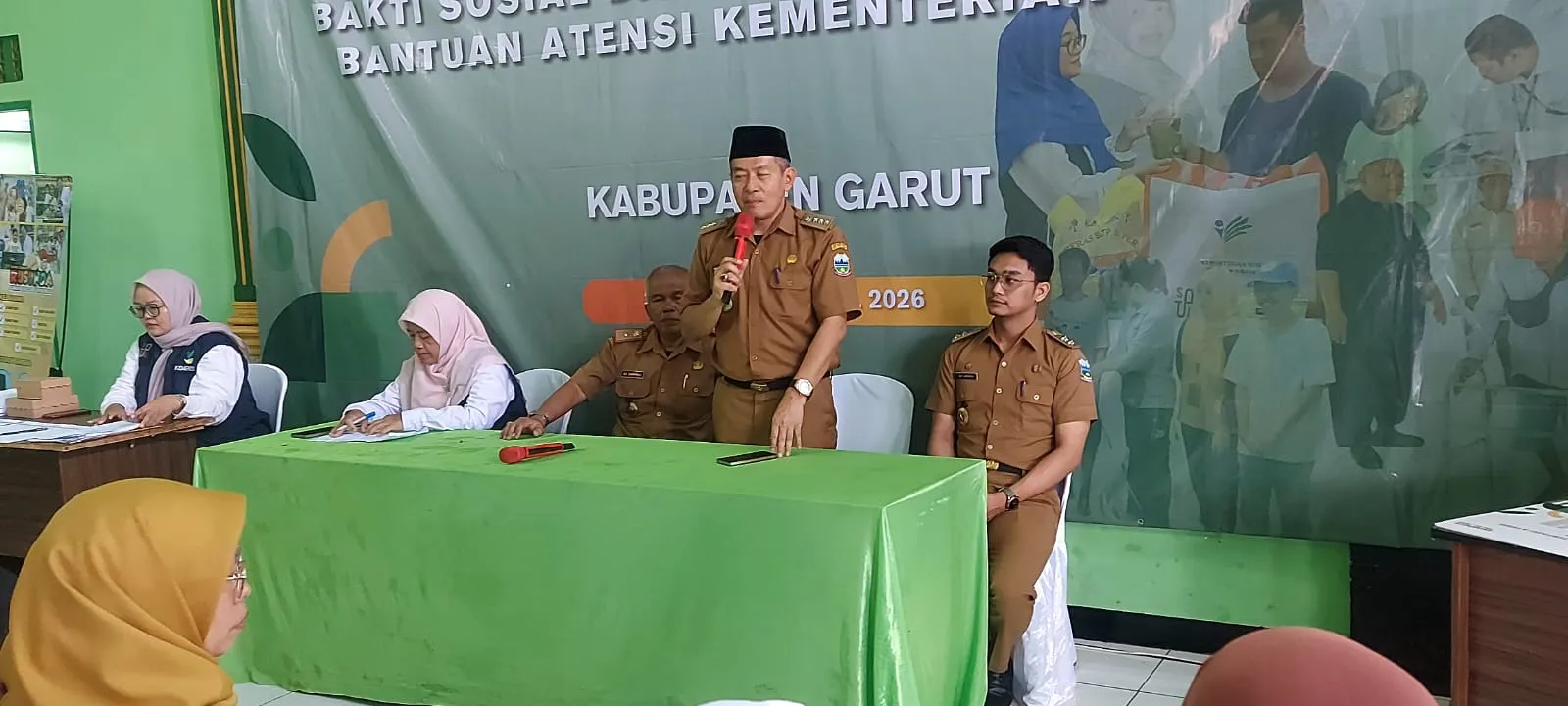 Pada kesempatan yang sama, Kepala Dinas Sosial Kabupaten Garut, H. Aji Sukarmaji, menyampaikan salam hormat kepada Camat Karangpawitan beserta jajaran, pihak Sentra Terpadu Pangudi Luhur Bekasi, para pendamping PKH, pendamping perlindungan sosial (PKSK), serta seluruh penerima manfaat.