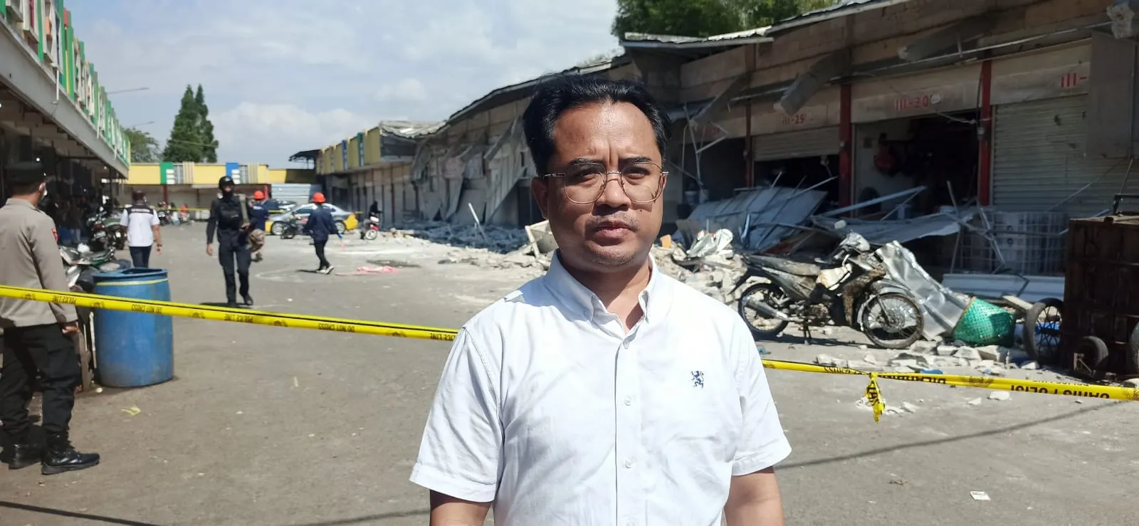 Ia juga menyampaikan bahwa terdapat sekitar 13 kios yang terdampak dalam peristiwa tersebut. Bangunan pasar sendiri diketahui mulai beroperasi sejak tahun 2019.